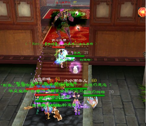 在队长若蝶的坚持下,我找来本服的大花~保持微笑~(63级,武器加7)重新组好五花队,微笑负责拉蝙蝠,彼岸花开抗,我做打手,妞妞和若蝶补血,帅哥太岁终于挂了~On