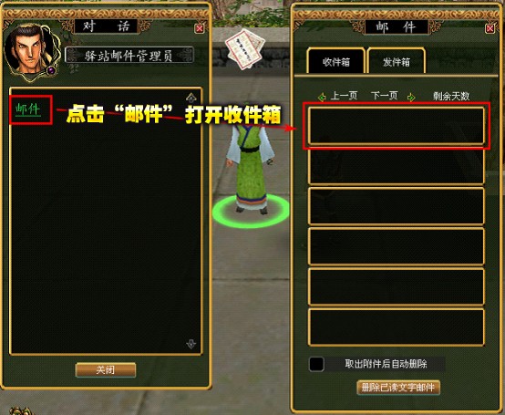 第三步:前往各大城镇任意一个NPC“驿站邮件管理员”处领取道具卡奖励。